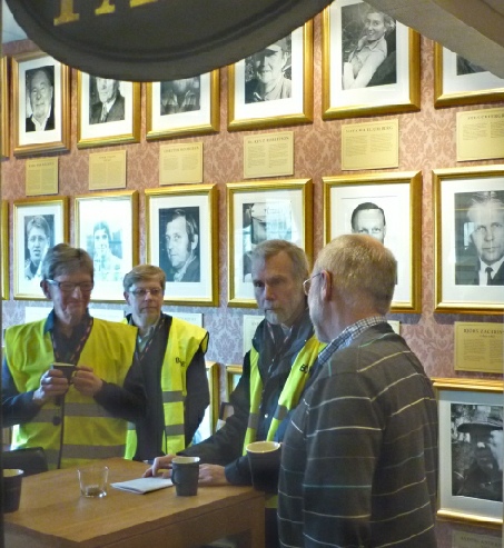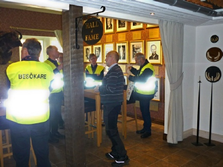 Fika i Normas ”Hall of Fame” (reflexvästar blir lite fraträdande i blixtljus).